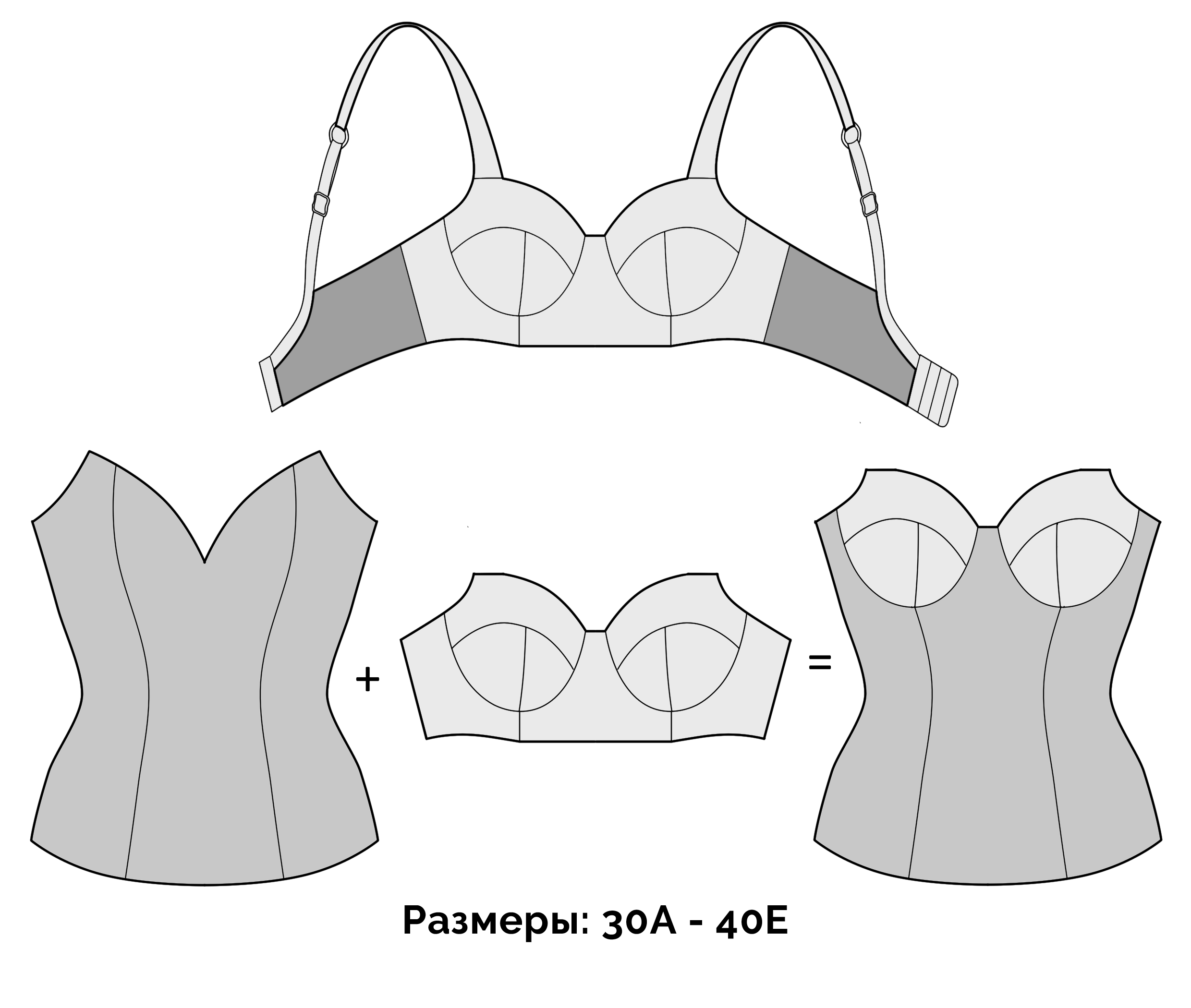 Используйте эту выкройку для создания высококачественного бюстгальтера или чашек для эксклюзивного платья или корсета.